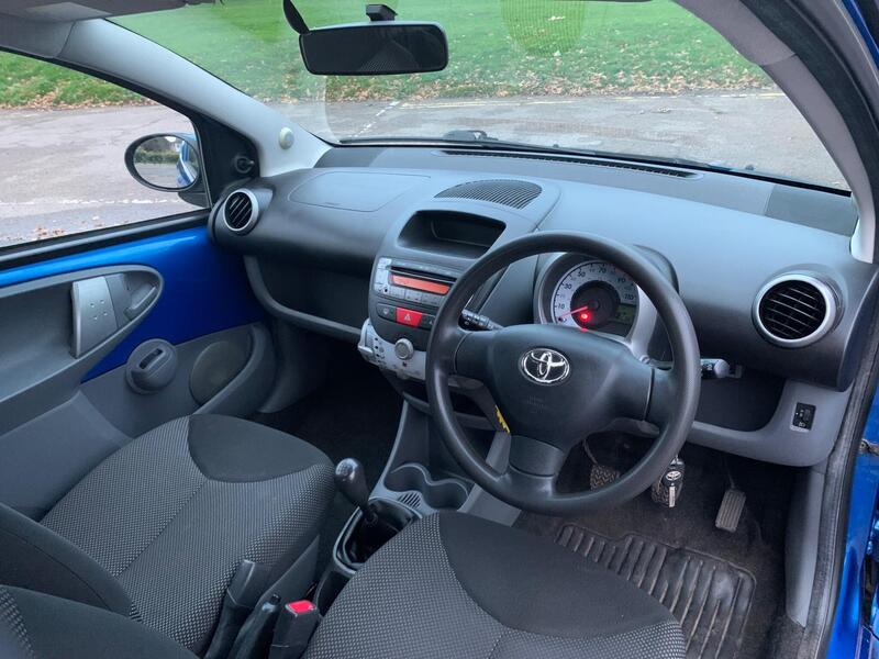 Toyota Aygo 1.0 VVT i-Blue Petrol for Sale. Comes with Good Service History and 2 Keys. HPI clear. Comes with 12 months MOT. 4 owners from new. Oil and filter been changed at 96400 mileage as well. The annual road tax only £20!!This lovely Aygo is only 1.0, very cheap to insure and economical with mileage. Drives Brilliant. It features Front Electric Windows, CD/Radio Player with Aux, Bluetooth, Central Locking, Climate Control and many more.